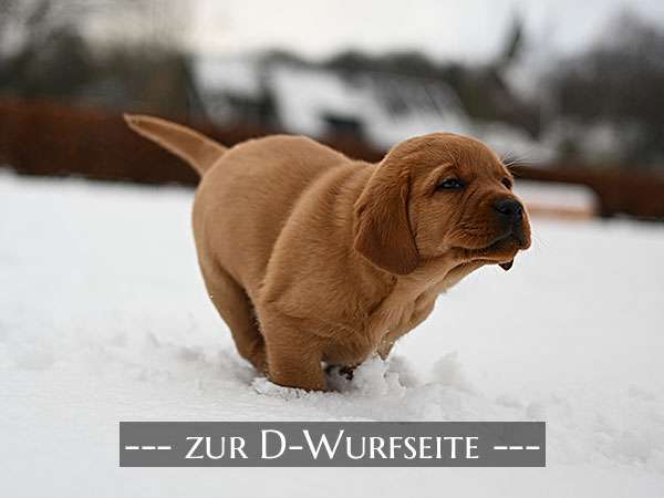 Es schneit und das nicht wenig! Die Welpen sind hin und weg und können ihr Glück nicht fassen. Der D-Wurf ist inzwischen 6 Wochen alt und sie gedeihen prächtig. Die Neugier wächst von Tag zu Tag und sie erkunden immer mehr die große weite Wiese. Neue Bilder sind wie immer in der GALERIE.